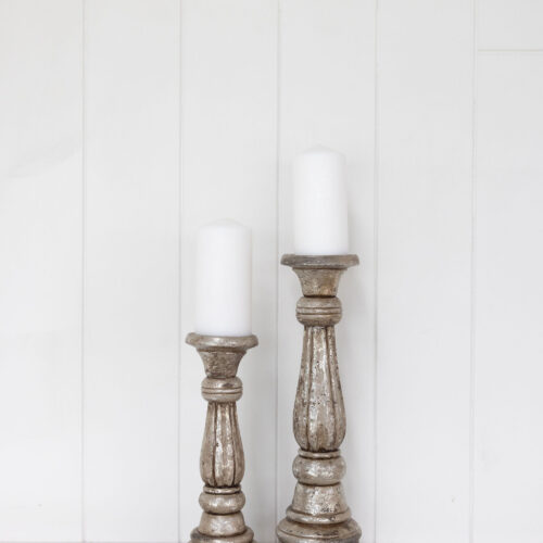 ANTIQUE SILVER HAND-CARVED PILLAR CANDLEHOLDER